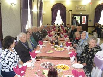 На протяжении нескольких часов длился праздничный концерт. Приглашенные пели и танцевали, участвовали в увлекательных конкурсах, читали стихи, шутили и просто веселились, позабыв о возрасте. Гостей тепло поздравляли ансамбль «Рябинушка» с песнями «Посидим по-хорошему», «Встреча друзей», ансамбль «Русская песня», воспитанники Детской школы искусств. В этот день людям почтенного возраста было сказано очень много пожеланий!
