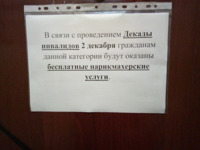 В этот день люди пытаются помочь с защитой прав и свобод тем, кто по какой-то причине утратил трудоспособность. Проведение дня инвалидов направлено на привлечение внимания к проблемам инвалидов, защиту их достоинства, прав и благополучия, на привлечение внимания общества на преимущества, которые оно получает от участия инвалидов в политической, социальной, экономической и культурной жизни. Цели, ради которых этот день был провозглашен, — полное и равное соблюдение прав человека и участие инвалидов в жизни общества. В Комплексном центре социального обслуживания населения Кореневского района такая дата не могла пройти незамеченной. 2 декабря в Центре проведена благотворительная акция. Для людей с ограниченными возможностями были оказаны бесплатные парикмахерские услуги. Социальными работниками отделений социального обслуживания на дому проведены генеральные уборки на безвозмездной основе в домах у получателей (инвалидов) социальных услуг. В межпоселенческой библиотеке организована выставка творческих работ. Так же оформлена книжная выставка, вместившая в себя книги о сильных духом людях.