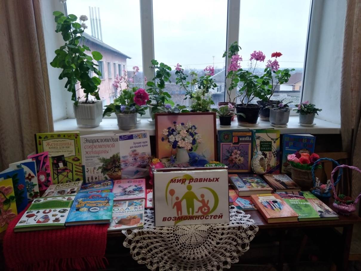 В период с 01.12.2020 г. по 10.12.2020 г. совместно с Кореневской межпоселенческой библиотекой была проведена выставка творческих работ людей с ограниченными возможностями под названием «Мир равныхвозможностей», выполненных на самую разную тематику, с применением всевозможных техник и материалов. А также оформлена книжная выставка. Данное мероприятие уже стало традиционным. В этом году его посетили 248 человек.
