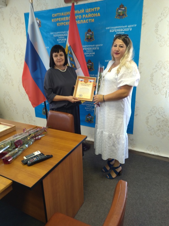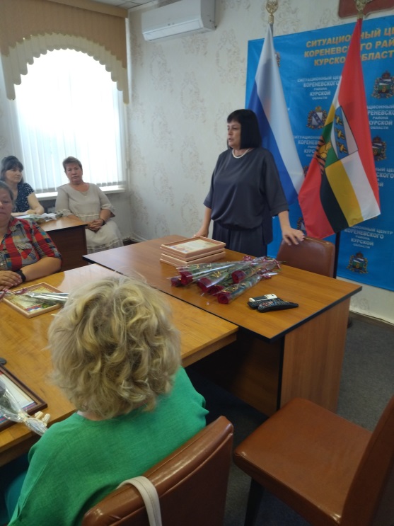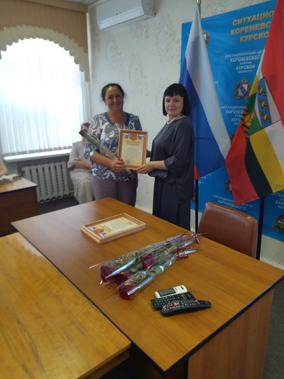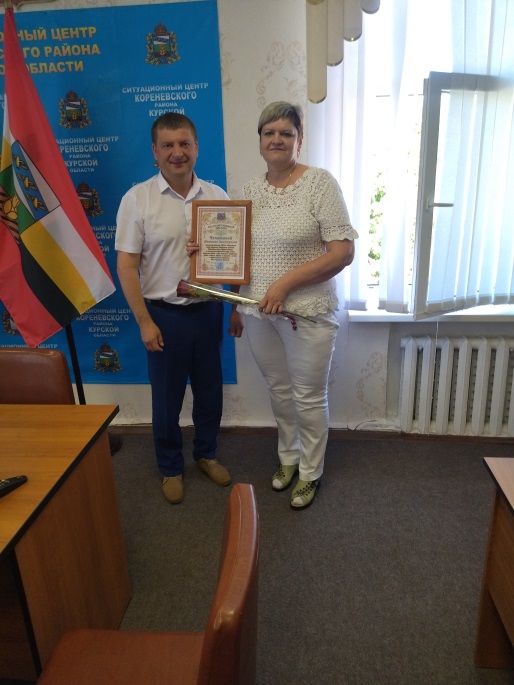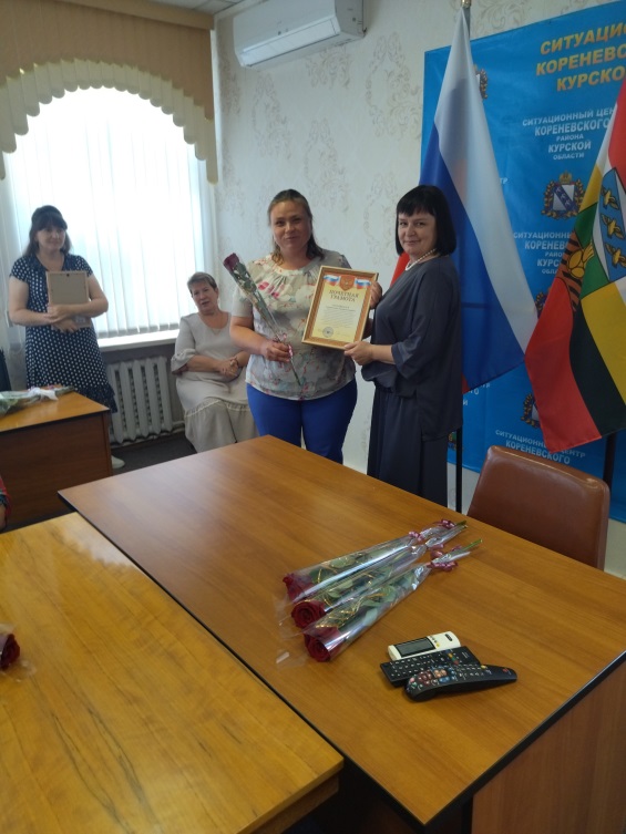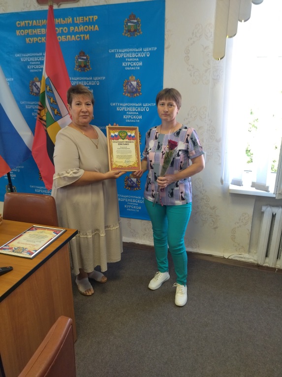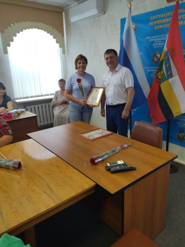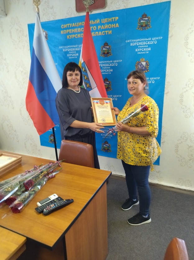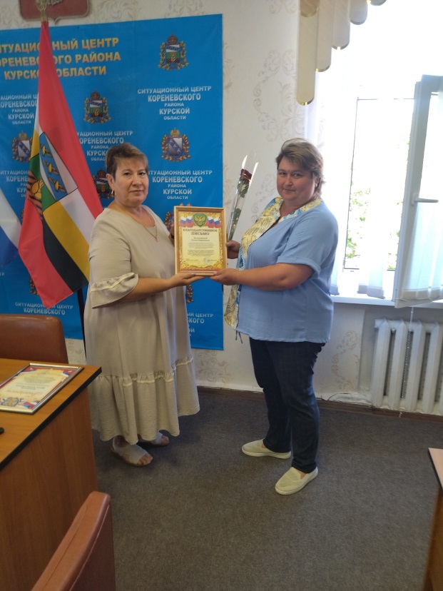 Благодарственные письма и Почетные грамоты от Администрации Кореневского района, пос. Коренево и Комплексного центра были вручены социальным работникам: Брежневой Оксане Валерьевне, Шумара Людмиле Николаевне, Котовой Елене Михайловне, Белевской Елене Викторовне, Зильковской Ольге Борисовне, Кальченко Наталье Павловне, Чечетовой Наталье Викторовне, Козбан Екатерине Сергеевне, Костиной Елене Владимировне, Григоровой Ольге Александровне, Чеберячка Алле Викторовне, Коноваленко Ольге Викторовне, Гросу Елене Николаевне, Попеску Зинаиде Владимировне, Скоробогатько Людмиле Егоровне, Аникеенко Ирине Викторовне.